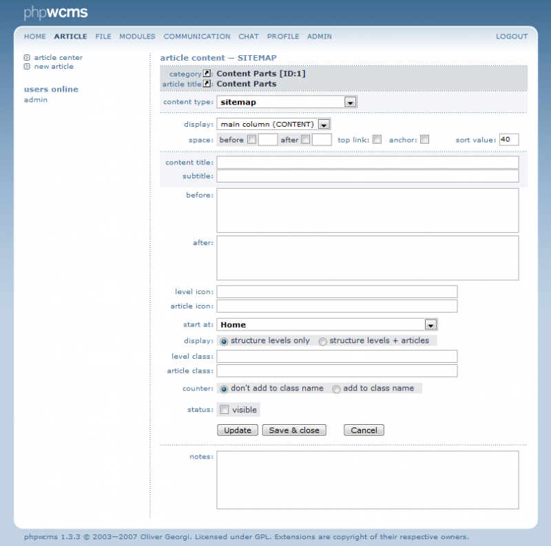 2. structure levels + articles: the generated sitemap will display both structure levels and articles