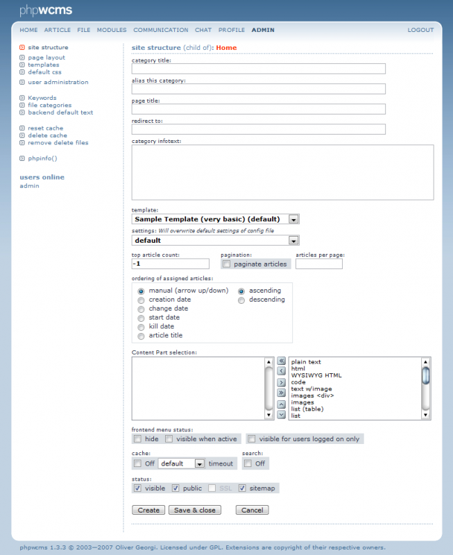 Here it is possible to choose an other template for the whole appearance of the site. There is the file "custom_settings.php" in "template/inc_settings/template_default/". This file contains the same values as the conf.template_default.php, that you can find in the config folder of phpwcms.